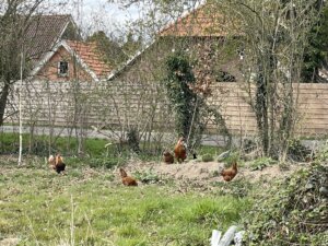 Een zeer ruime Boston en echt traditioneel gebouwd, het gaat mooi worden, zelfs de kippen voelen zich hier thuis.